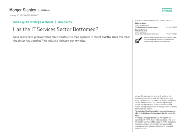 【Morgan Stanley】【20230101】印度股市策略网络研讨会:IT服务行业是否已经触底?-31页 行业研究