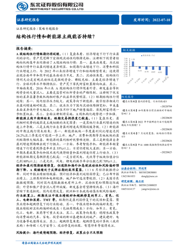 【东北证券】【20220710】策略专题报告:结构性行情和新能源主线能否持续?-29页 行业研究