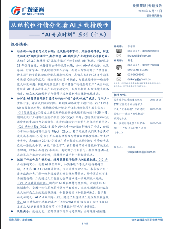 【广发证券】【20230615】从结构性行情分化看AI主线持续性-15页 行业研究