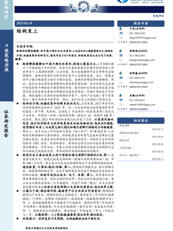 【国泰君安证券】【20230319】A股策略周报:结构至上-16页 行业研究