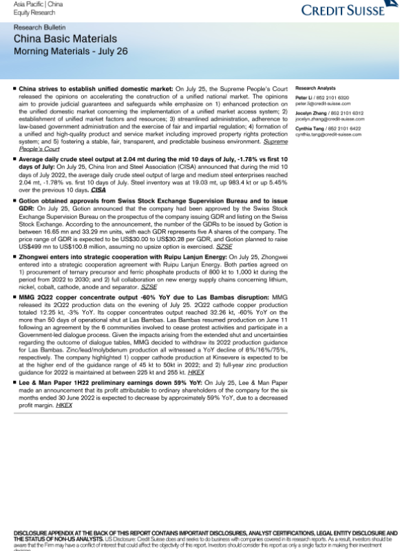 【Credit Suisse】【20220726】CS-China Basic Materials-220726-6页 行业研究
