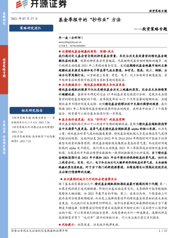 【开源证券】【20210727】投资策略专题:基金季报中的“抄作业”方法-17页 行业研究