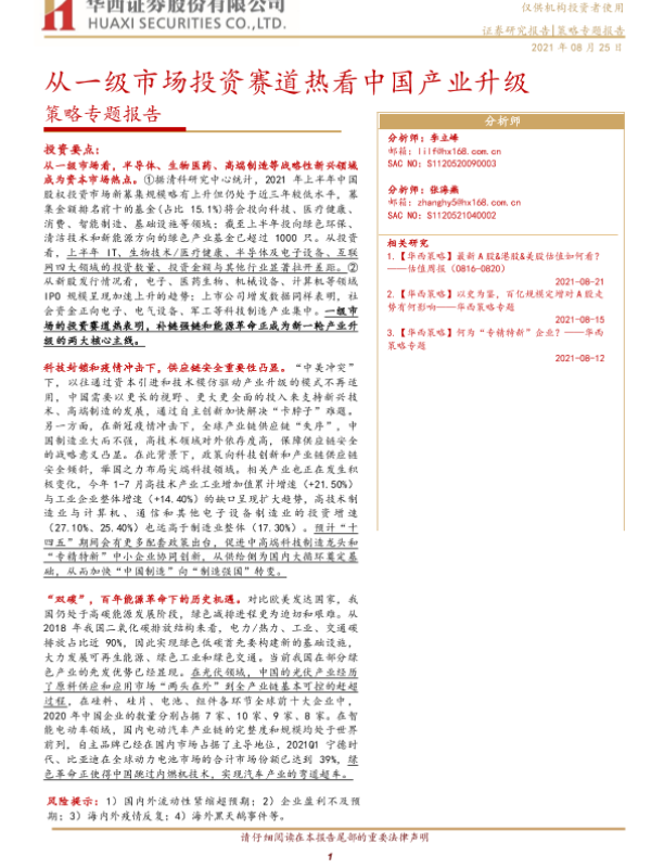 【华西证券】【20210825】从一级市场投资赛道热看中国产业升级-15页 行业研究
