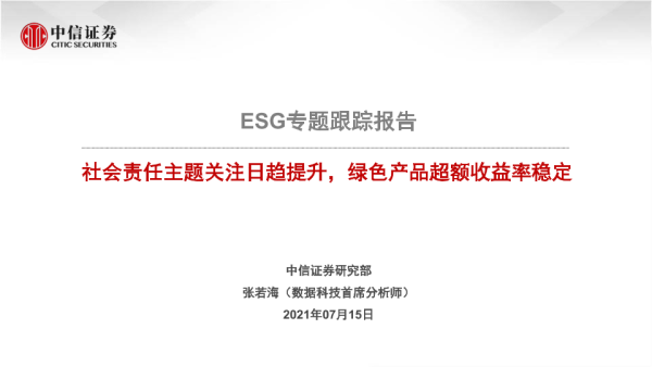 【中信证券】【20210715】科技:ESG专题跟踪报告:社会责任主题关注日趋提升,绿色产品超额收益率稳定-17页 行业研究