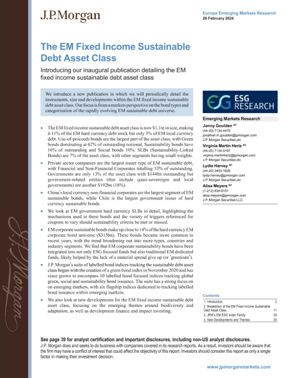 【J.P. Morgan】【20240226】JPMorgan-The EM Fixed Income Sustainable Debt Asset Class Introducing...-42页 行业研究