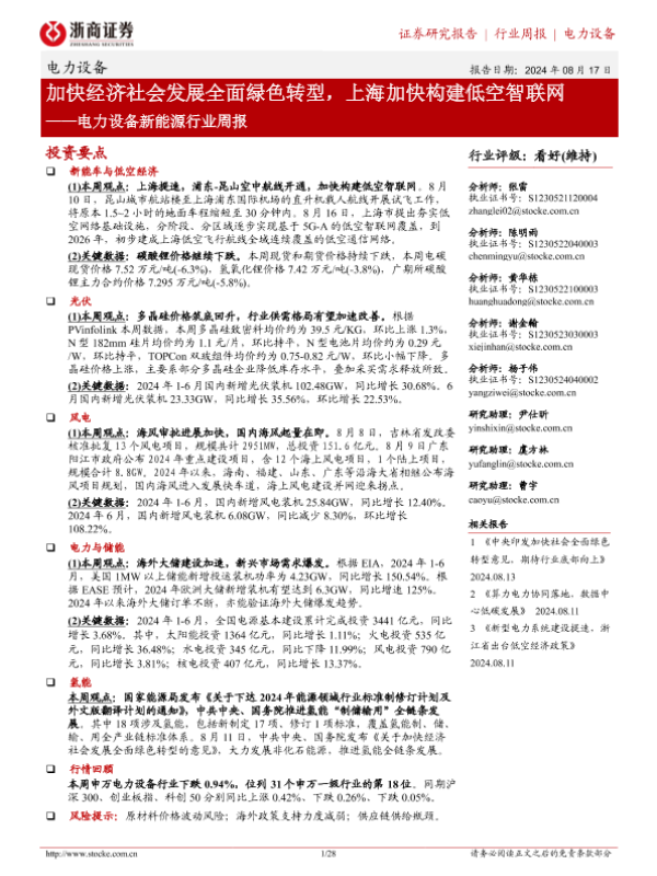 【浙商证券】【20240817】加快经济社会发展全面绿色转型,上海加快构建低空智联网-28页 行业研究