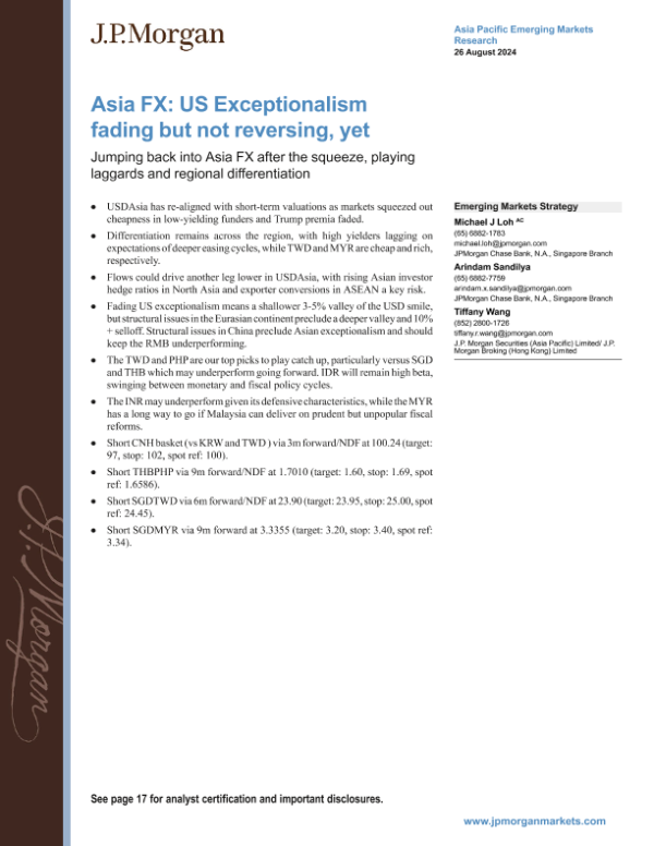 【J.P. Morgan】【20240826】Asia FX US Exceptionalism fading but not reversing, yet-21页 行业研究