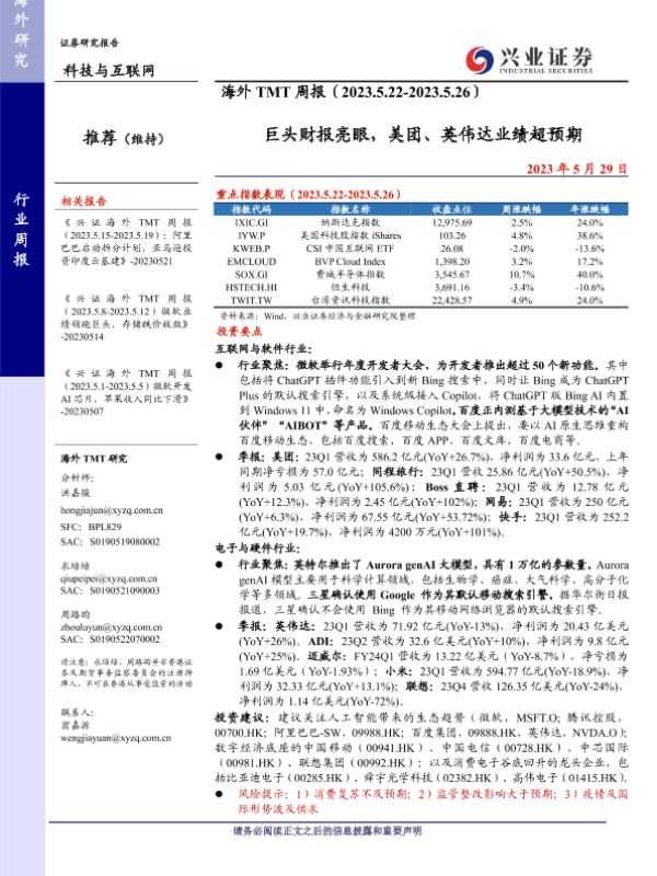 【兴业证券】【20230529】海外TMT周报:巨头财报亮眼,美团、英伟达业绩超预期-21页 行业研究