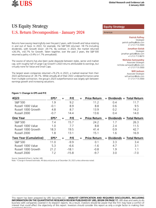 【UBS Securities LLC】【20240102】US Equity Strategy U.S. Return Decomposition - January 2024-20页 行业研究