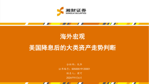 【湘财证券】【20240906】海外宏观:美国降息后的大类资产走势判断-40页 行业研究