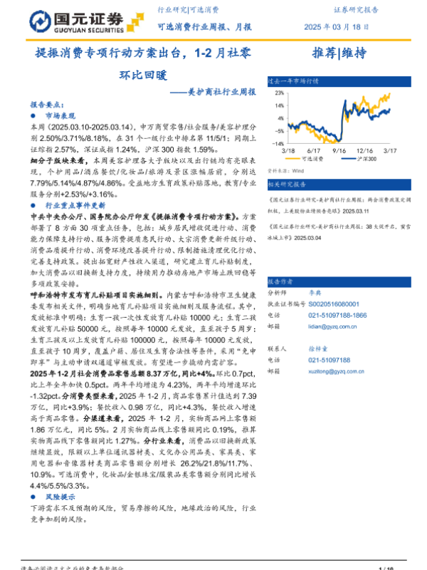 【国元证券】【20250318】美护商社行业周报:提振消费专项行动方案出台,1~2月社零环比回暖-10页 行业研究