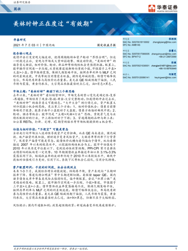 【华泰证券】【20210703】20210703-华泰证券-固定收益月报:美林时钟正在度过“有效期”-26页 行业研究