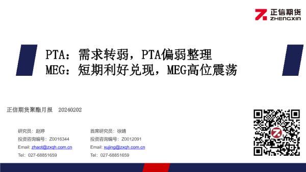 【正信期货】【20240202】PTA:需求转弱,PTA偏弱整理 MEG:短期利好兑现,MEG高位震荡-23页 行业研究