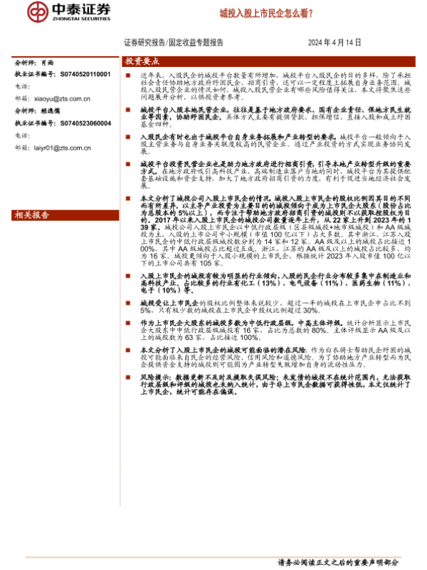【中泰证券】【20240414】固定收益专题报告:城投入股上市民企怎么看?-15页 行业研究