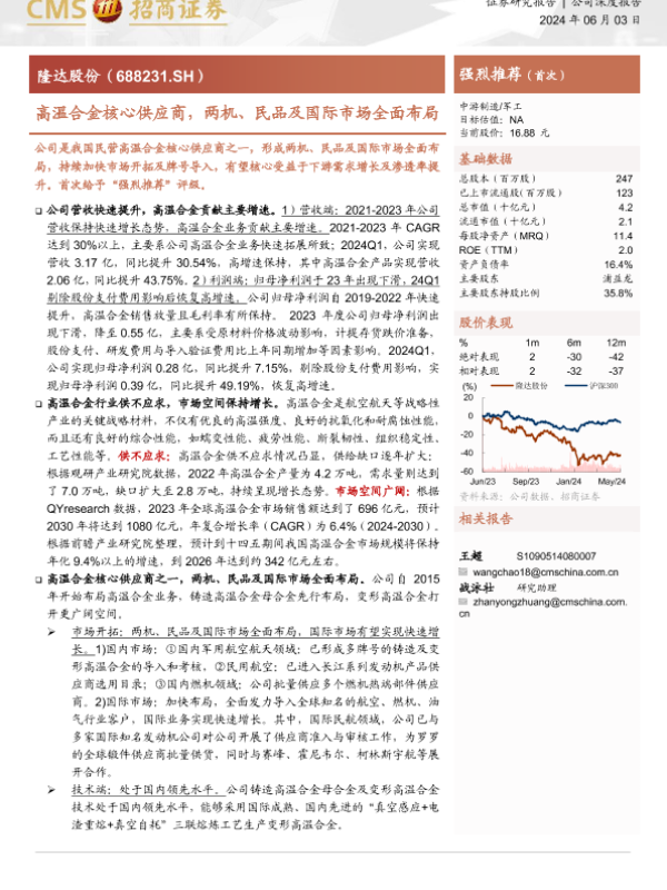 【海通证券】【20240603】隆达股份-688231.SH-高温合金核心供应商,两机、民品及国际市场全面布局-22页 行业研究