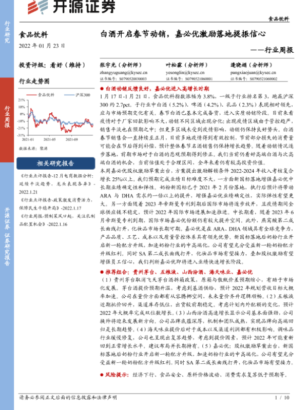 【开源证券】【20220123】食品饮料行业周报:白酒开启春节动销,嘉必优激励落地提振信心-10页 行业研究