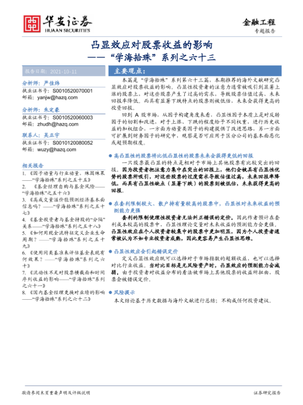 【华安证券】【20211011】凸显效应对股票收益的影响——“学海拾珠”系列之六十三-23页 行业研究
