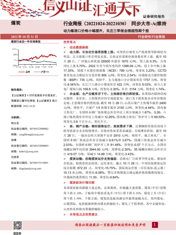 【山西证券】【20221031】煤炭行业周报:动力煤港口价格小幅提升,关注三季报业绩超预期个股-19页 行业研究
