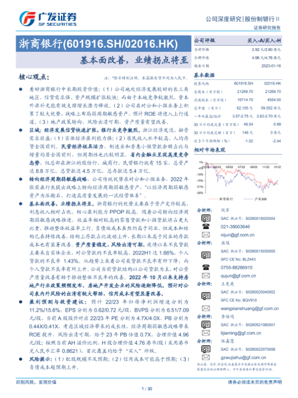 【广发证券】【20230116】浙商银行(601916.SH/02016.HK)-基本面改善,业绩拐点将至-30页 行业研究