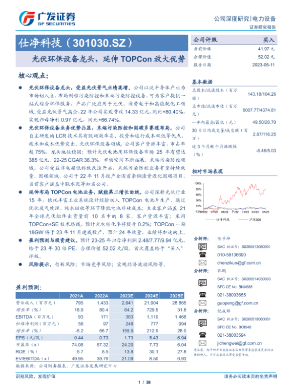 【广发证券】【20230511】仕净科技(301030.SZ)-光伏环保设备龙头,延伸TOPCon放大优势-38页 行业研究