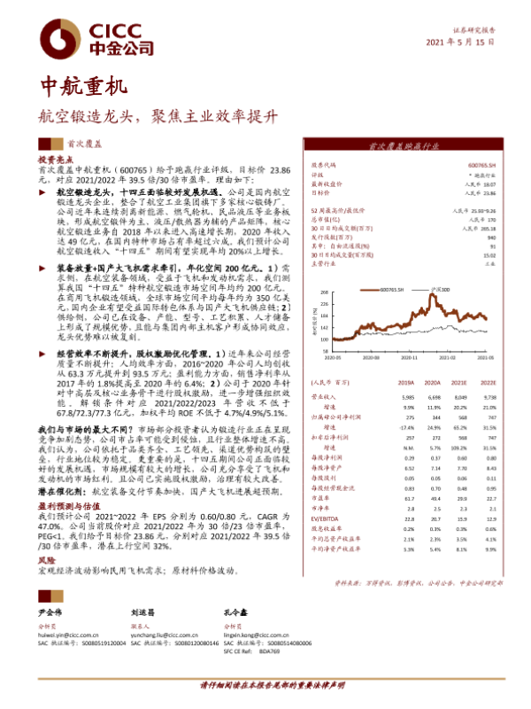 【中金公司】【20210515】中航重机-600765.SH-航空锻造龙头,聚焦主业效率提升-27页 行业研究