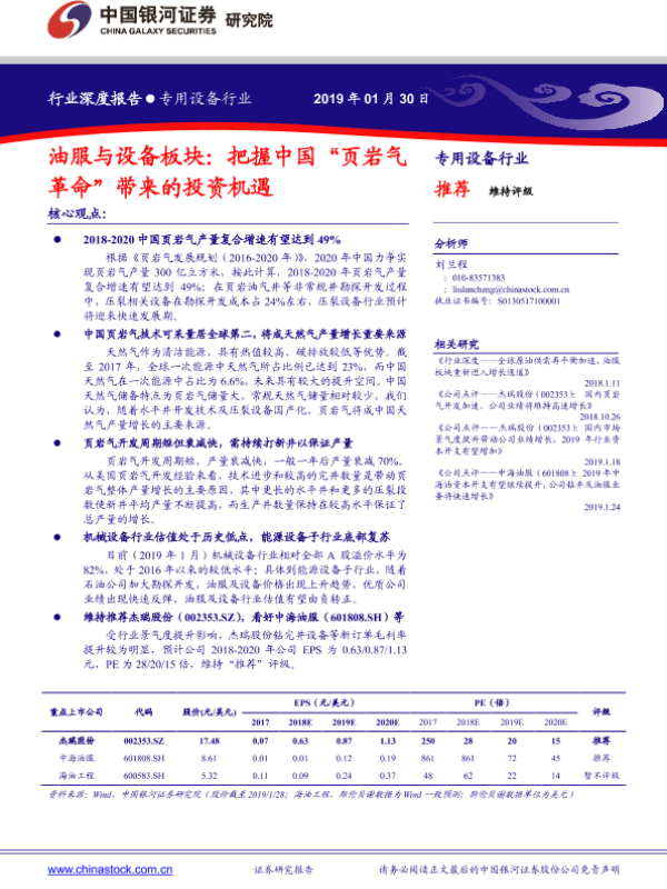 【银河证券】【20190130】专用设备行业深度报告:油服与设备板块:把握中国“页岩气革命”带来的投资机遇-26页 行业研究