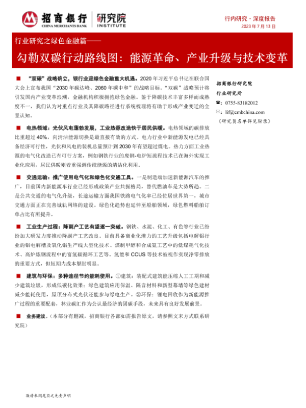 【招商银行】【20230713】行业研究之绿色金融篇——勾勒双碳行动路线图:能源革命、产业升级与技术变革-29页 行业研究