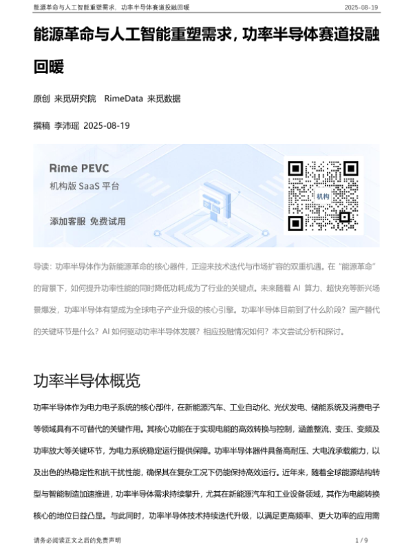【来觅研究院】【20250819】能源革命与人工智能重塑需求,功率半导体赛道投融回暖-9页 行业研究