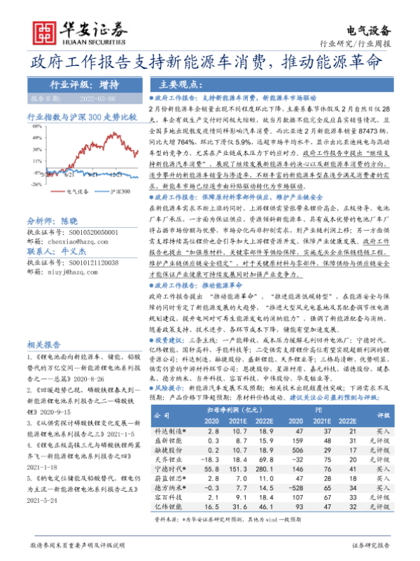 【华安证券】【20220306】政府工作报告支持新能源车消费,推动能源革命-23页 行业研究