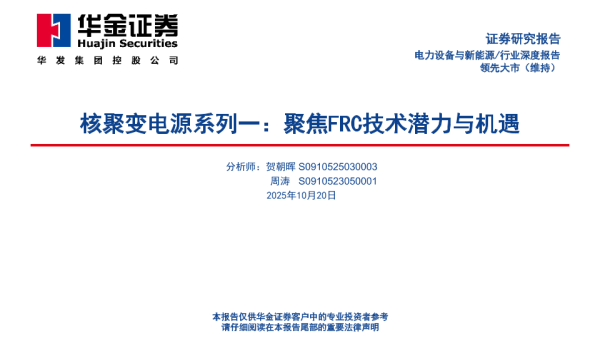【华金证券】【202510】核聚变电源系列一:聚焦FRC技术潜力与机遇-43页 证券期货研究报告