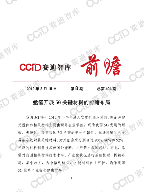 【未知】【20190215】亟需开展5G关键材料前瞻布局-7页 行业研究