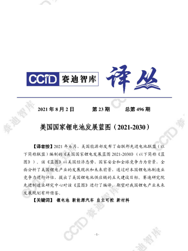 【美国能源部】【202106】美国国家锂电池发展蓝图 2021-2030-24页 行业研究