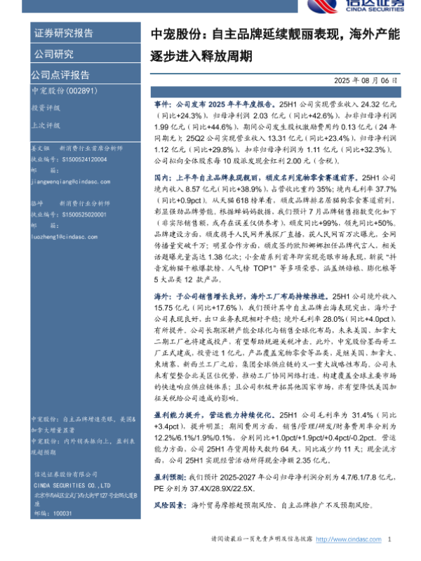 【信达证券】【20250806】中宠股份:自主品牌延续靓丽表现,海外产能逐步进入释放周期-5页 公司研究