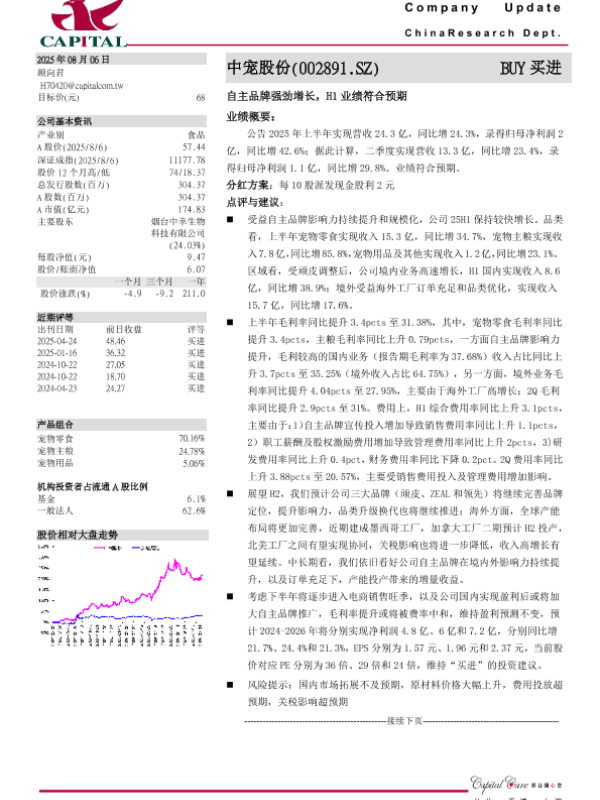 【群益证券】【20250806】中宠股份-自主品牌强劲增长,H1业绩符合预期-3页 公司研究
