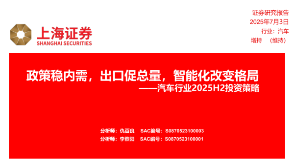 【上海证券】【20250703】汽车行业2025H2投资策略:政策稳内需,出口促总量,智能化改变格局-11页 证券期货研究报告