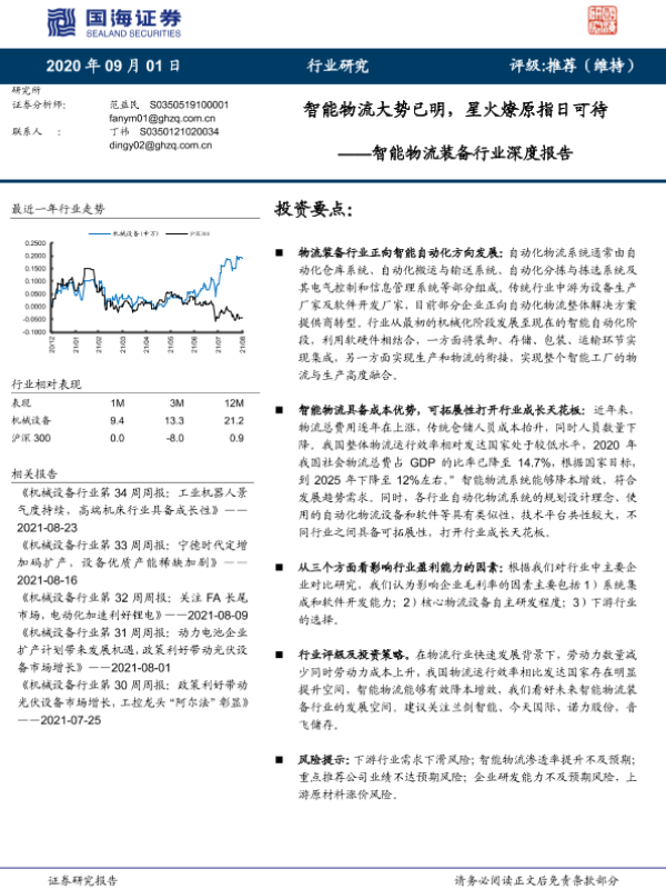 【国海证券】【20210901】智能物流装备行业深度报告:智能物流大势已明,星火燎原指日可待-32页 行业研究