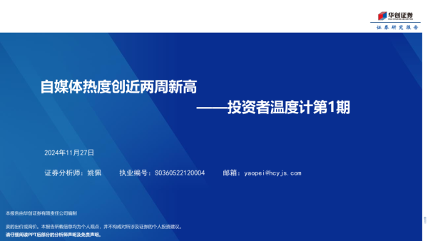 【华创证券】【20241127】投资者温度计第1期:自媒体热度创近两周新高-15页 行业研究