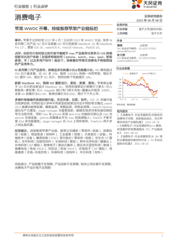 【天风证券】【20220608】消费电子:苹果WWDC开幕,持续推荐苹果产业链标的-11页 行业研究