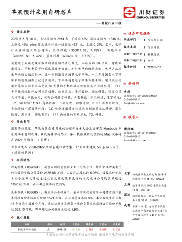 【川财证券】【20200610】科技行业日报:苹果预计采用自研芯片-4页 证券期货研究报告