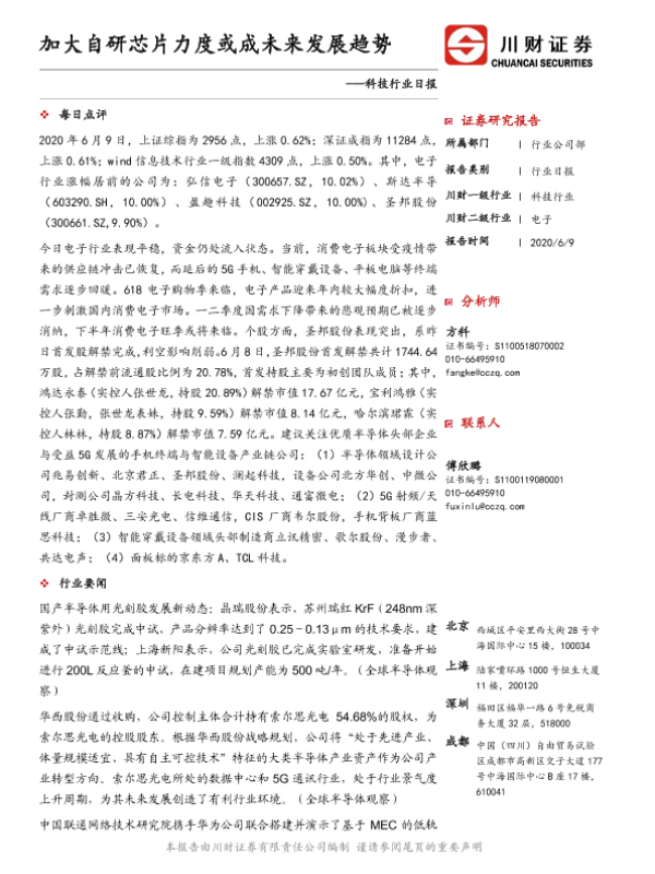 【川财证券】【20200609】加大自研芯片力度或成未来发展趋势-5页 证券期货研究报告