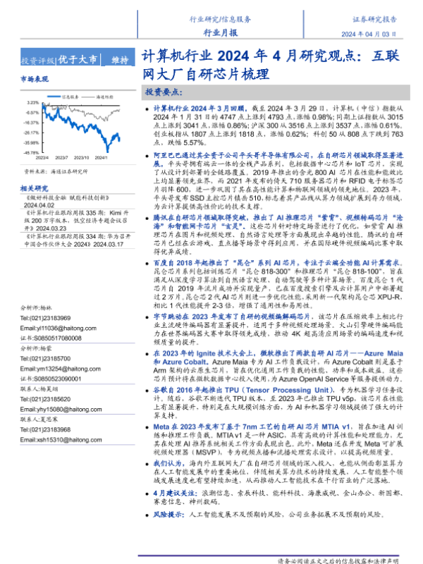 【海通证券】【20240403】计算机行业2024年4月研究观点:互联网大厂自研芯片梳理-10页 行业研究