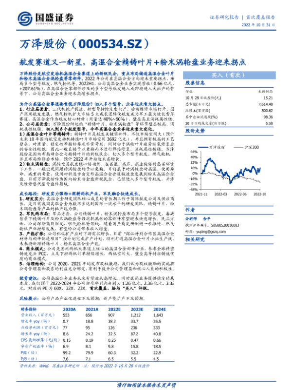 【国盛证券】【20221031】万泽股份:航发赛道又一新星,高温合金精铸叶片+粉末涡轮盘业务迎来拐点-21页 行业研究