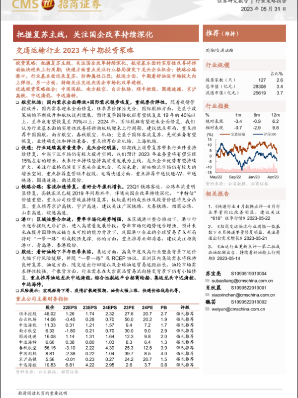 【海通证券】【20230531】交通运输行业2023年中期投资策略:把握复苏主线,关注国企改革持续深化-33页 行业研究