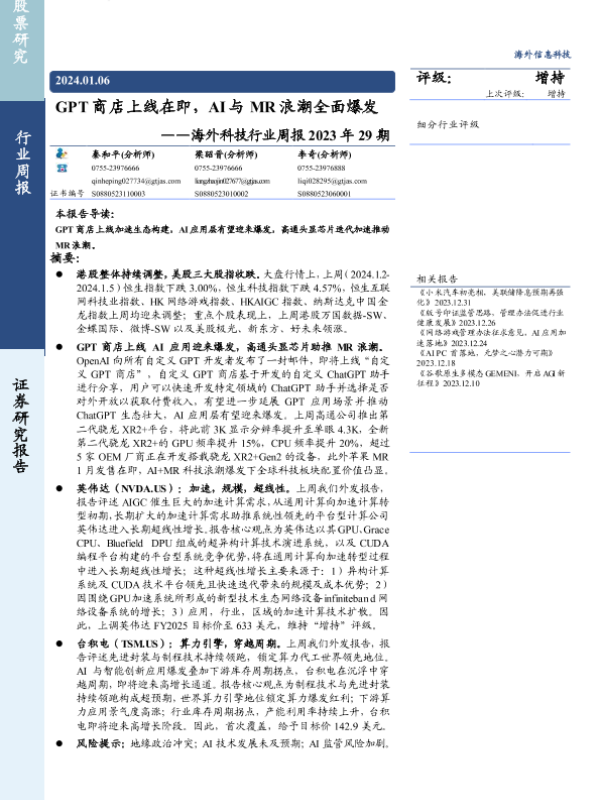 【国泰君安证券】【20240106】GPT商店上线在即,AI与MR浪潮-17页 行业研究