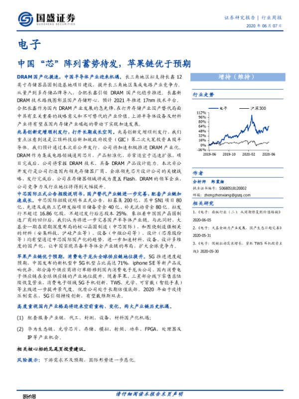 【国盛证券】【20200607】电子行业周报:中国“芯”阵列蓄势待发,苹果链优于预期-20页 行业研究