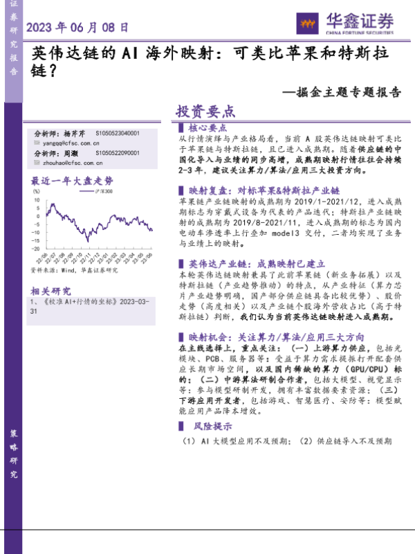 【华鑫证券】【20230608】掘金主题专题报告:英伟达链的AI海外映射,可类比苹果和特斯拉链?-20页 行业研究
