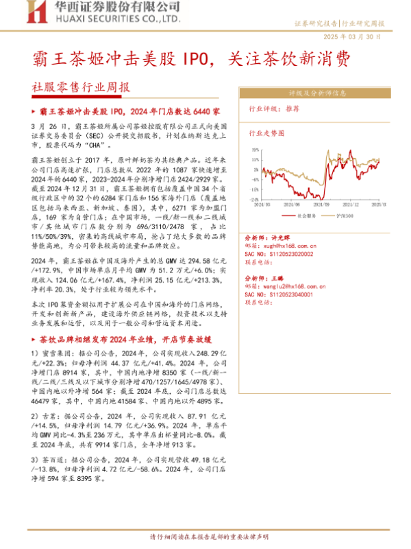 【华西证券】【20250330】社服零售行业周报:霸王茶姬冲击美股IPO,关注茶饮新消费-13页 行业研究