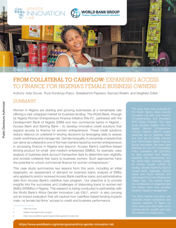 【世界银行】【202404】从抵押品到现金流:扩大尼日利亚女性企业主的融资渠道-8页 行业研究