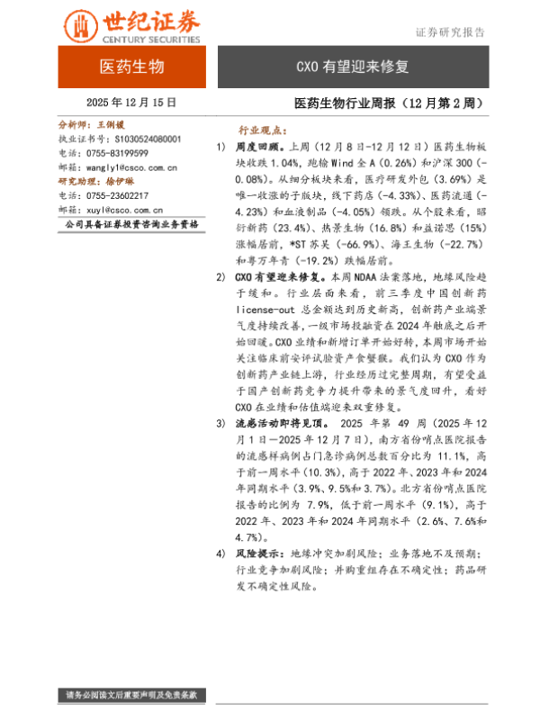 【世纪证券】【202312】2025-12-19_世纪证券_医药生物行业周报(12月第2周):CXO有望迎来修复.pdf-8页 证券期货研究报告