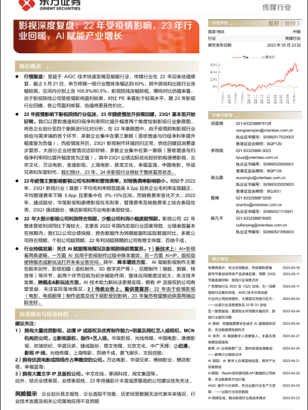 【东方证券】【20230523】传媒行业影视深度复盘:22年受疫情影响,23年行业回暖,AI赋能产业增长-30页 行业研究